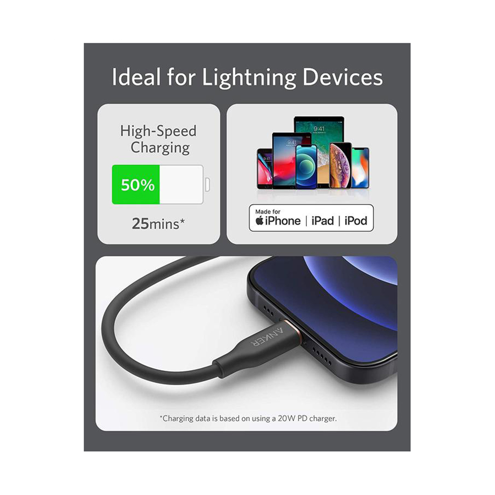 کابل شارژ تایپ سی به لایتنینگ 180 سانتیمتر برند انکر | A8663