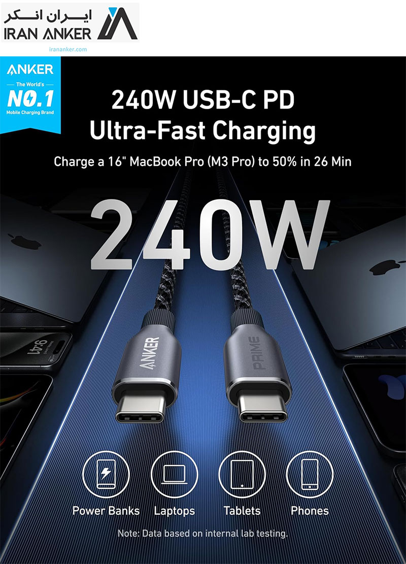 شارژ سریع و انتقال داده با نهایت اطمینان! کابل شارژ تایپ سی به تایپ سی 180 سانتیمتری انکر مدل A88E2، ایدهآل برای دستگاههای مدرن شما. با دوام بالا و عملکرد بینظیر، تجربهای متفاوت از شارژ و انتقال داده را حس کنید. خرید کنید و اتصال بیوقفه را تجربه کنید!