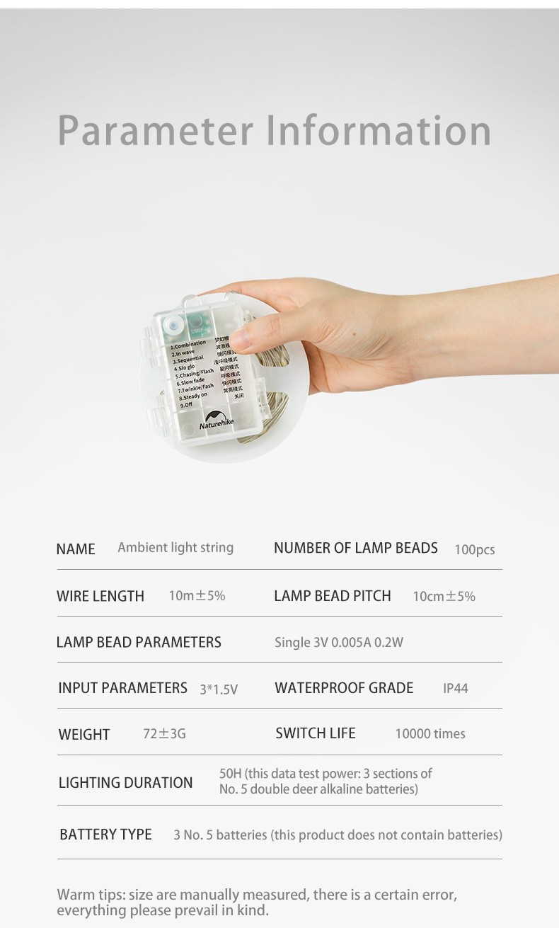 چراغ ریسه نیچرهایک | CNH22DQ019، بهترین انتخاب برای نورپردازی زیبا و دلنشین فضای باز و داخلی شما. با طراحی مقاوم و مصرف کم انرژی، تجربهای متفاوت از نورپردازی را ارائه میدهد. مناسب برای جشنها، کمپینگ و دکوراسیون. همین حالا این محصول جذاب را به سبد خرید خود اضافه کنید و فضایتان را زنده کنید!