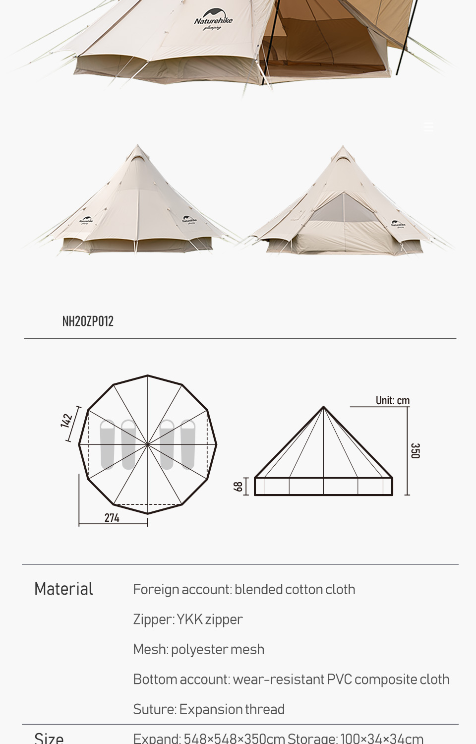 چادر سرخپوستی 12 نفره مدل Brighten 20 نیچرهایک | NH20ZP012