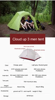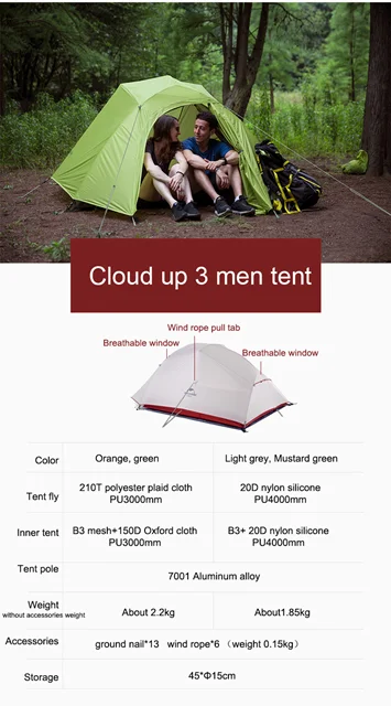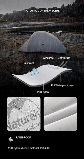 چادر نیچرهایک 3 نفره مدل Cloud up برف گیر پوشش NH18T030-T | 20D