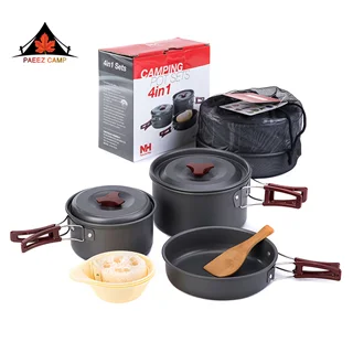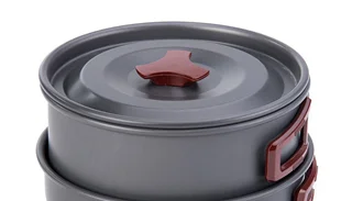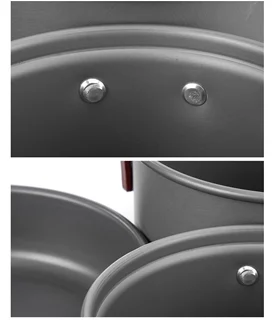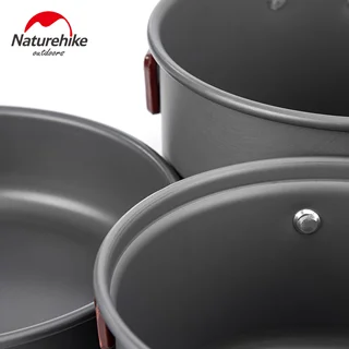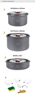 ست ظرف 4 تیکه نیچرهایک ( 2 سایز قابلمه و 1 ماهی تابه و 3 ظرف سوپ خوری ) بسیار سبک و کم حجم به همراه کفگیر چوبی و ملاقه و اسکاچ با دستگیره های استیل و روکش محافظ.
