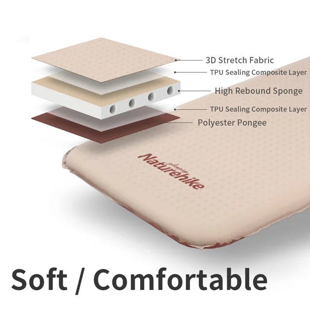 زیر انداز نیچرهایک اتوماتیک یک نفره Naturehike با ترکیبی از پارچه کشسان و فوم در داخل به ضخامت 6 سانتی متر که این پد خواب را نرم و راحت برای استفاده می کند. استفاده از ویژگی باد کردن خودکار با مدل های دریچه پر و اگزوز که روند استفاده از زيرانداز اتوماتيك نيچرهايك را تسهیل می کند.