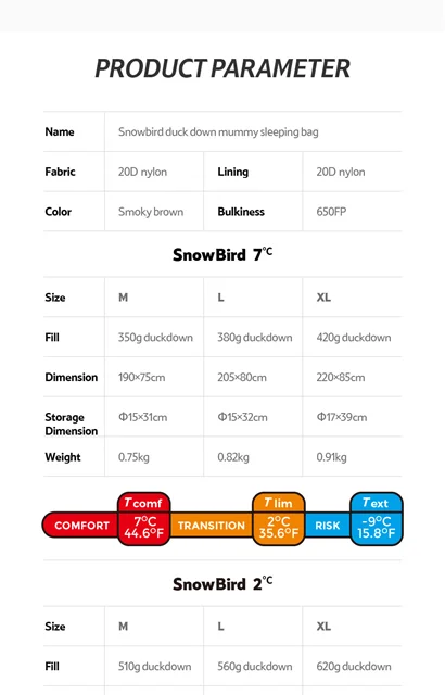 (Snowbird) Mummy duck down sleeping bag
