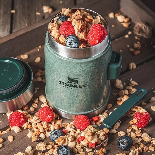 هر چیزی که برای یک غذای خوب نیاز دارید، در هر کجا که بروید، در دفتر کار، در سفر... قمقمه غذاخوری کلاسیک 400 میلی لیتری STANLEY Legendary با قاشق/چنگال در دسته ای کاربردی که از ضرر جلوگیری می کند و همیشه در دسترس است.